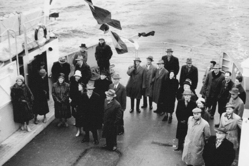 Bildet viser overlevering av D/S"Villa" bnr.10 fra J. Storviks Mek. Verksted til Den Norske Stat v/Fyrvesenet i mai 1921.