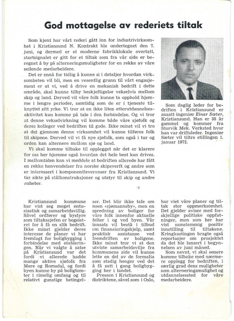 Nybygg og produksjon gjennom 105 år.Det er foreningen Næringshistorie Nordmøre som står bak utgivelsen. Foreningen har som sin hovedoppgave å ta vare på historien og historiene. Dette er den femte boken som er gitt ut i denne serien. I denne boken blir det spesielt satt søkelys på nybygg og produksjon gjennom 105 år. Redaktør for boken er Per Helge Pedersen.